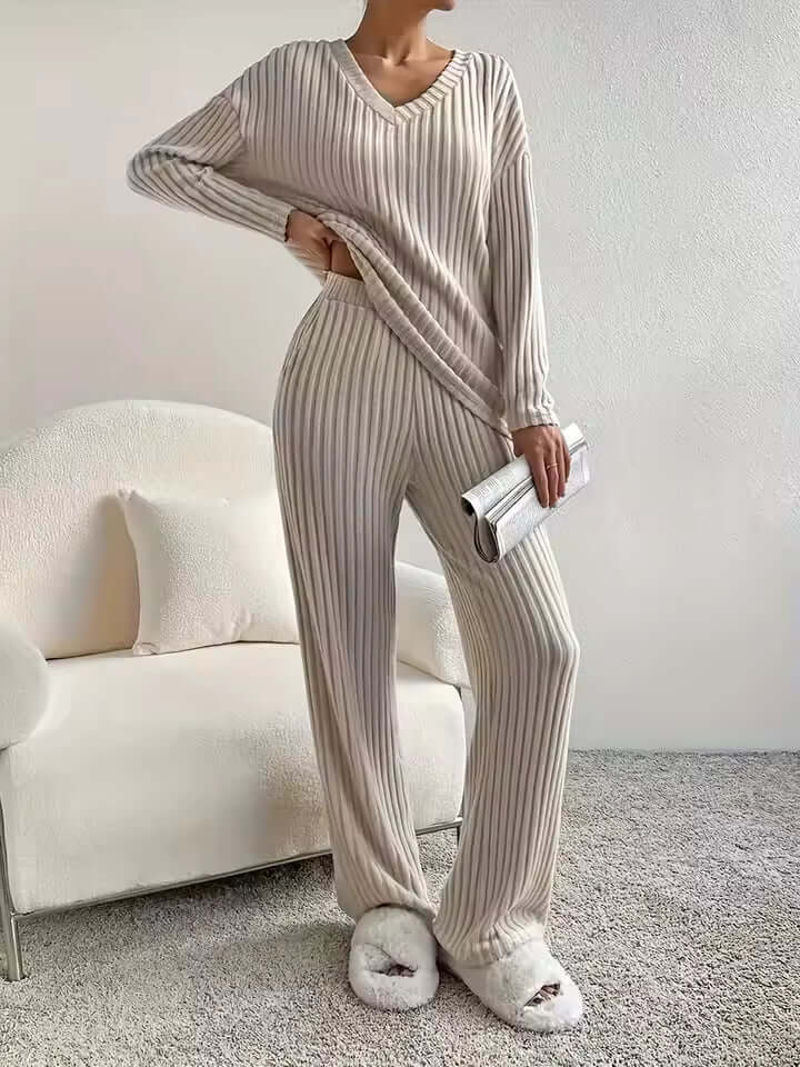 LÁVINE™ Cozy Ribbed Knit Two-Piece Lounge Set